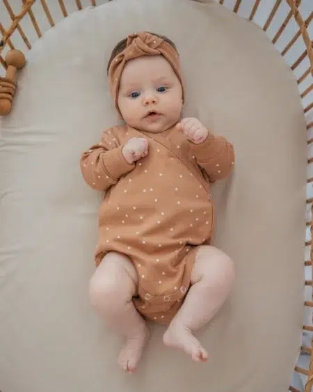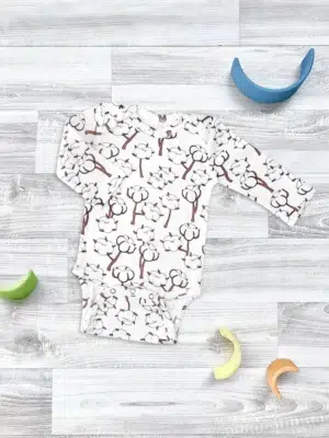 Боди Mjolk [мьёльк] растягивается по фигуре, ребёнку в нём не жарко, он не потеет. В такой одежде можно играть и спать круглый год, поддевать её под комбинезон или спальный мешок. Материал приятный на ощупь, эластичный, гигроскопичный, “дышит” и не вызывает аллергии. Кнопки расположены значительно выше их привычного месторасположения, что облегчает застёгивание изделия на малыше. В сопутствующих товарах можно подобрать изделия в комплект с таким же принтом: мягкую шапочку с узелком, двусторонний плед, сет пелёнок в тон или яркий комбинезон.
