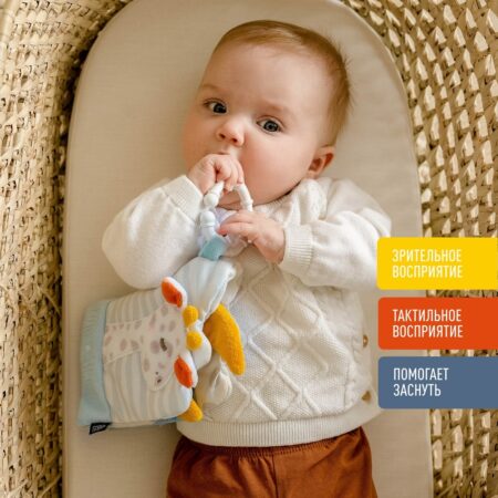 Игрушка совмещает в себе погремушку и подвеску с развивающими элементами. Перебирая и изучая эти элементы, малыш будет развивать свои тактильные ощущения, двигательную и слуховую активность.